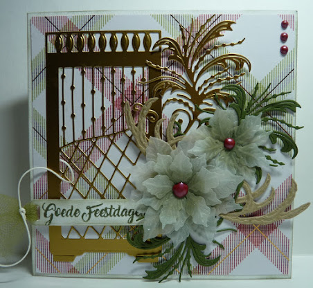 Een tijdje geleden heb ik een dessinblokje ( Memory Box, Christmas plaid) met ruitmotieven gekocht bij Doeading..Dat deed me denken aan oude Engelse landhuizen met een knappend haardvuur en warme geruite plaids overal gedrapeerd...geruit behang enz... geweien hier en daar.. :-)...:-)...Ik heb ook de nieuwe CR1518 gebruikt, dat zijn héle leuke kleine envelopjes waar je een kaartje met tekst in kunt doen...